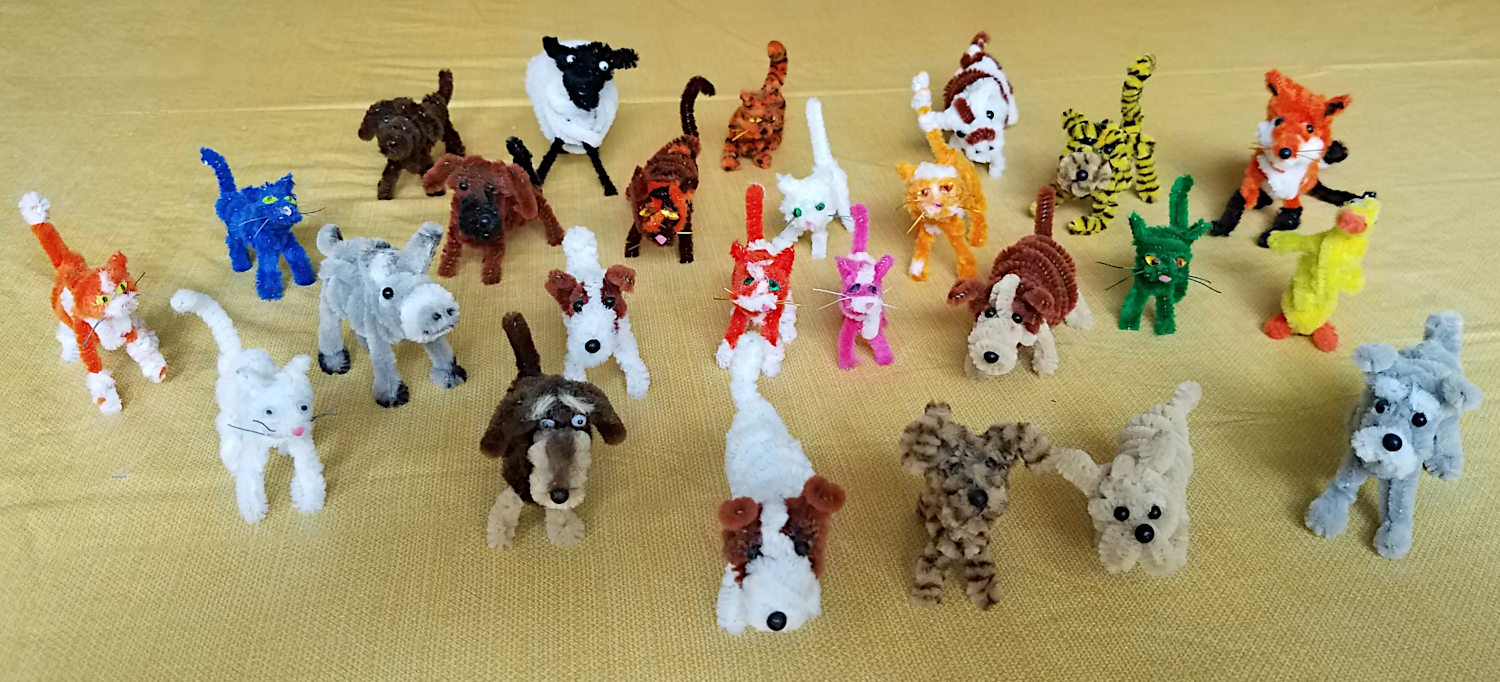 Gayle always enjoyed making little “things” – little sculptures or other creations. She said that it came naturally to her because of her experience with using small tools and materials and attention to detail from her oboe reed-making days. From her telephone wire orchestra to her pipe-cleaner menagerie, from Sculpey clay to Friendly Plastics modeling strips, she was always creating fun little items. She even gave new meaning to the expression “playing with your food.” Here is just a sampling from over the years.