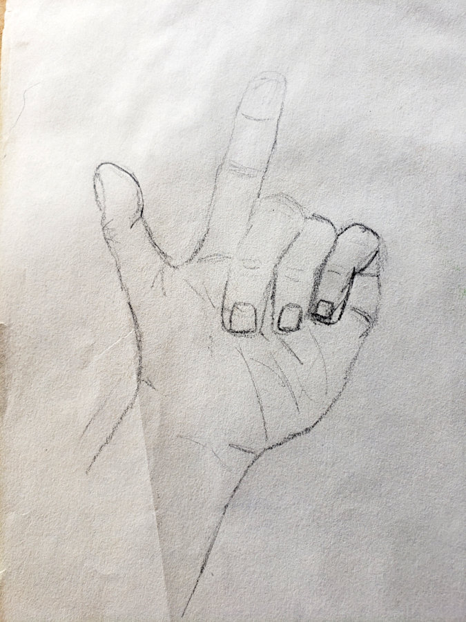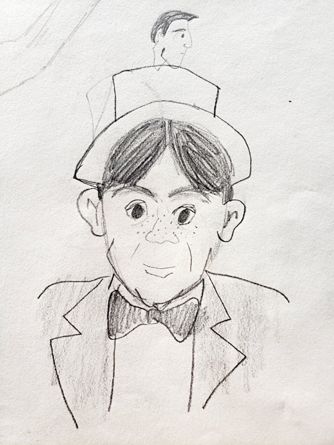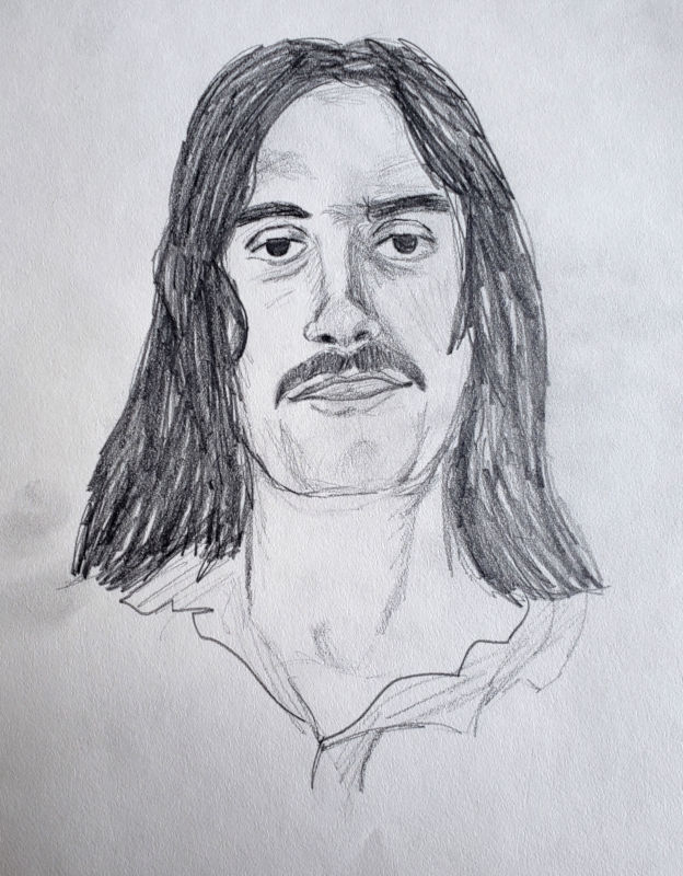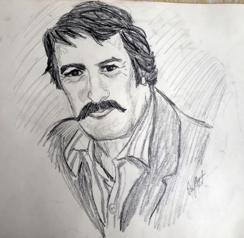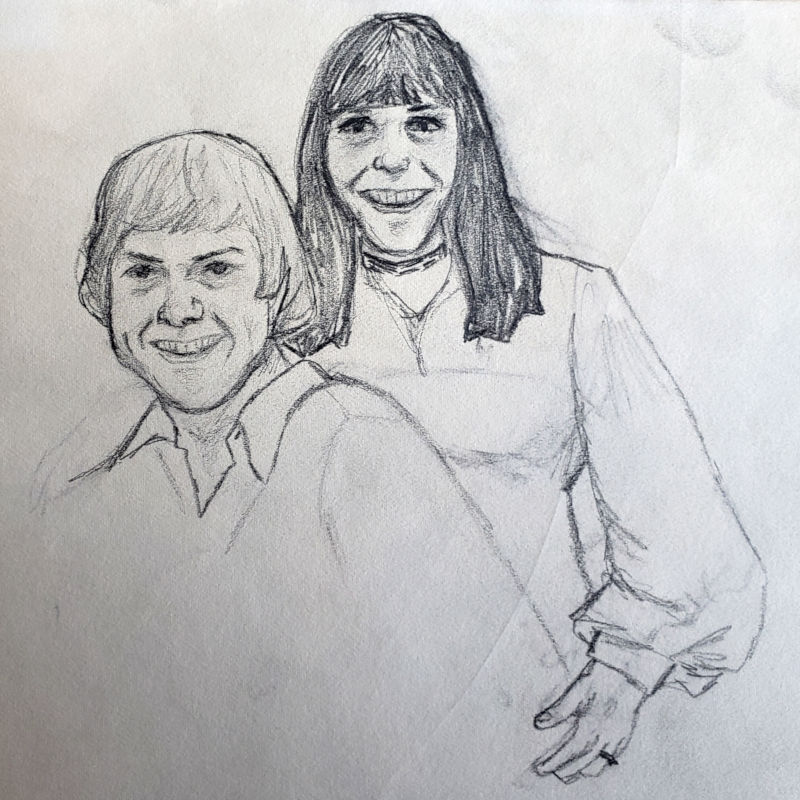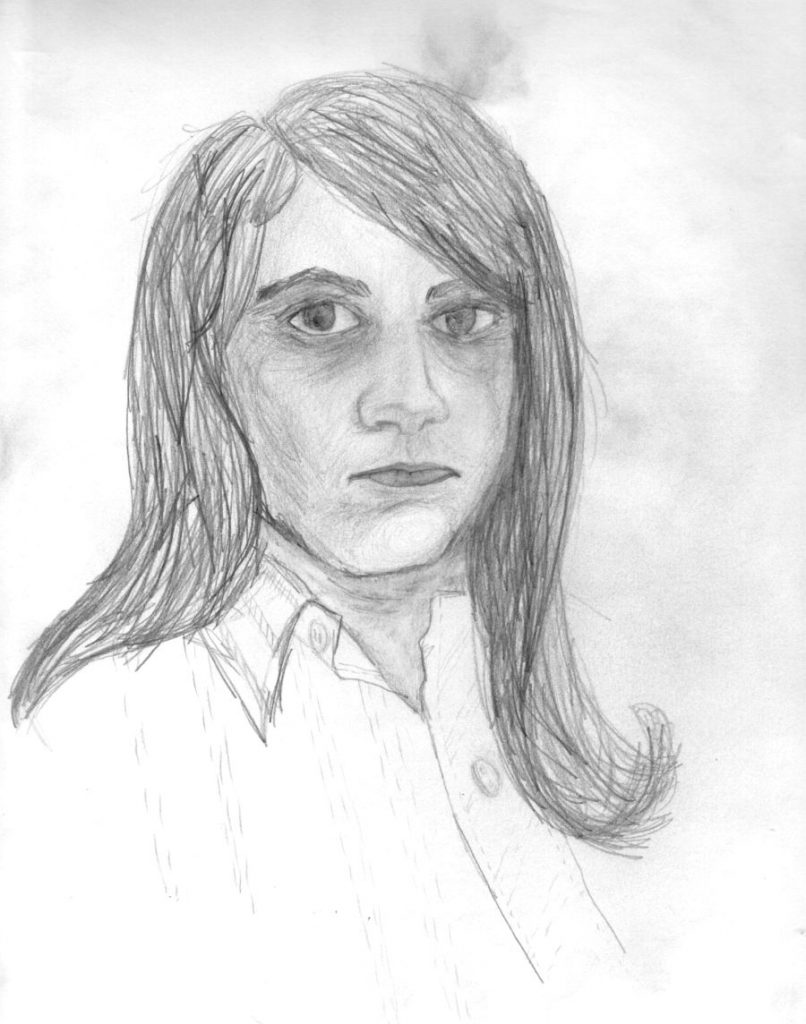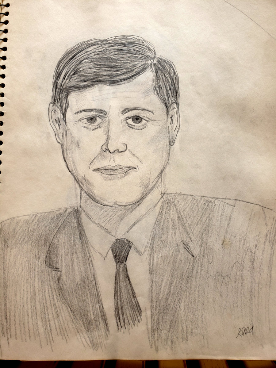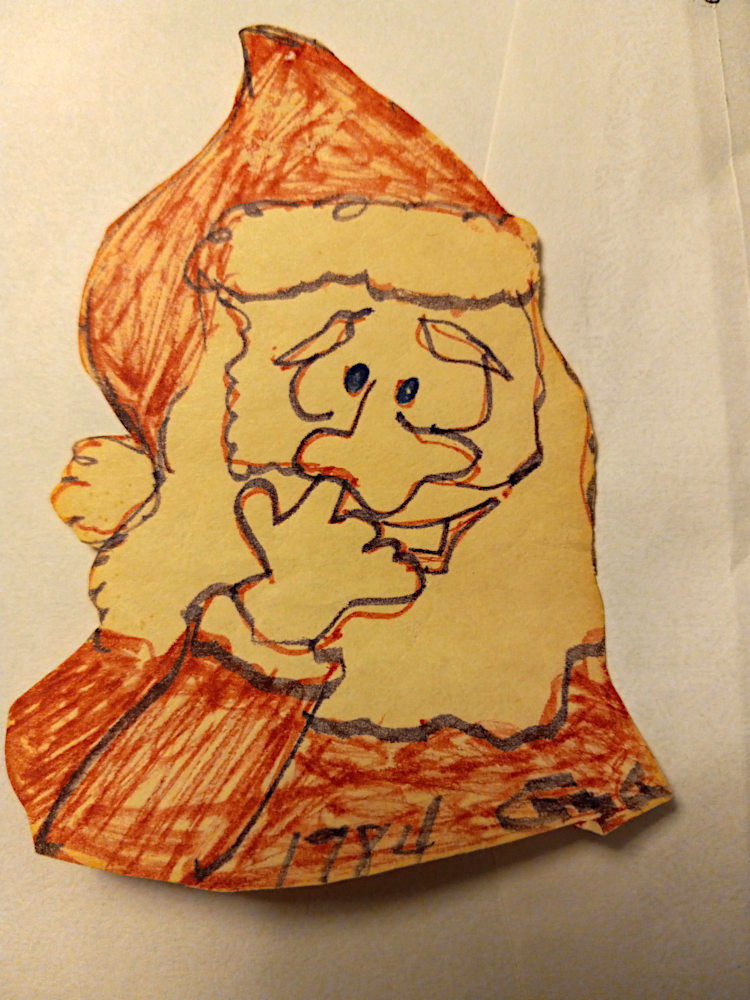 Most of these were drawn when Gayle was either still in school or as a young adult. However, she returned to doing this type of drawing in the later years of her life. The last two items are photos she took of someone interesting looking she saw on TV several years ago, and the sketch she drew of him.