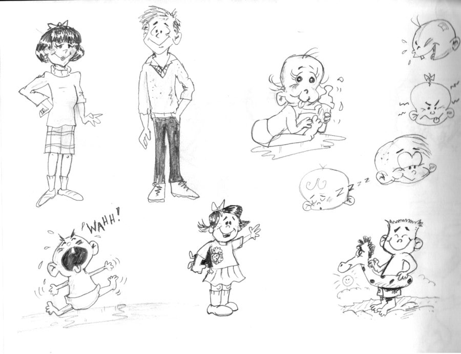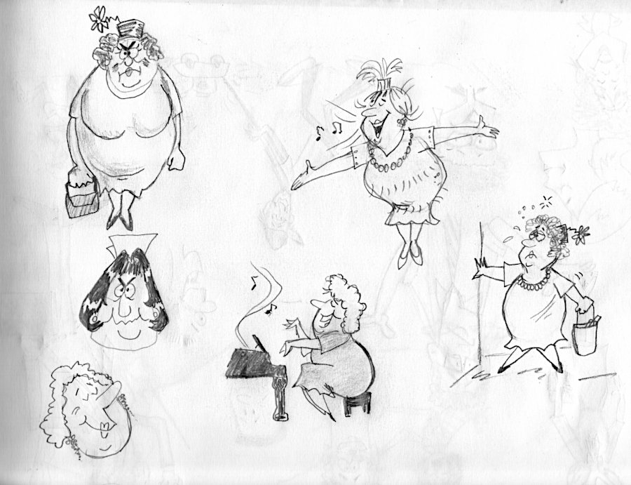 Gayle’s cartoon drawings were full of whimsy and her characters had a very distinctive style. There was never any doubt who drew them! The first four were done when she was much younger and her style was still evolving. The ones at the end are drawings she made for my animations – in a few cases you have the original sketches as well as the finished versions.