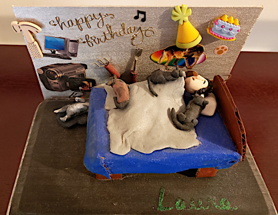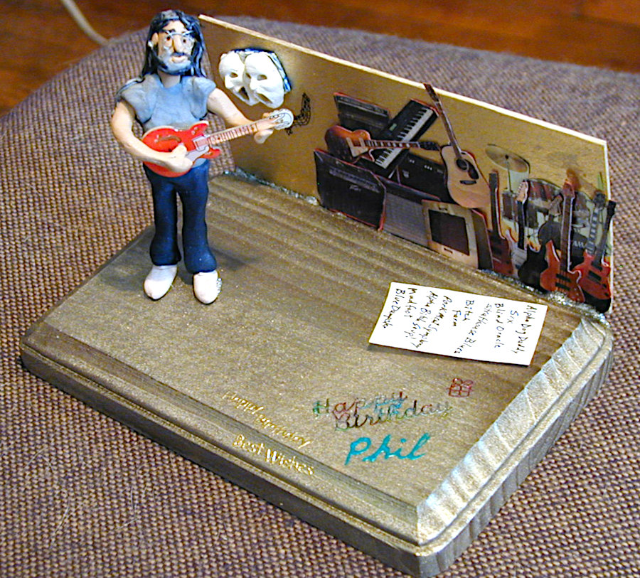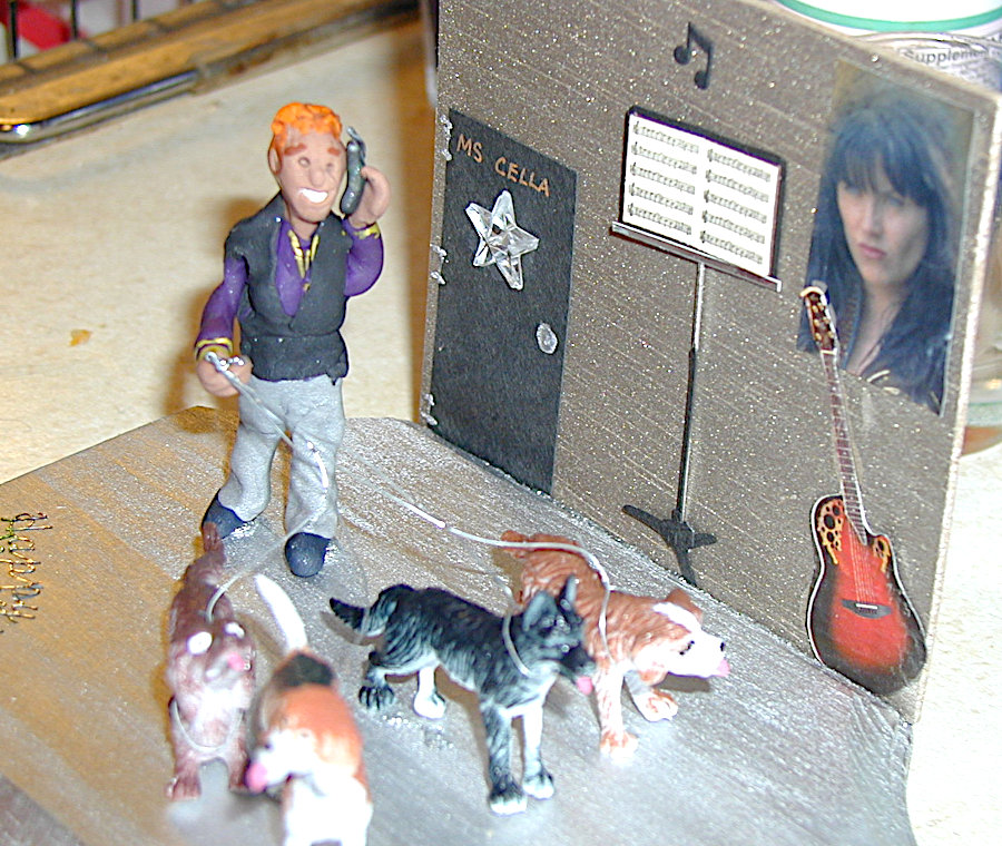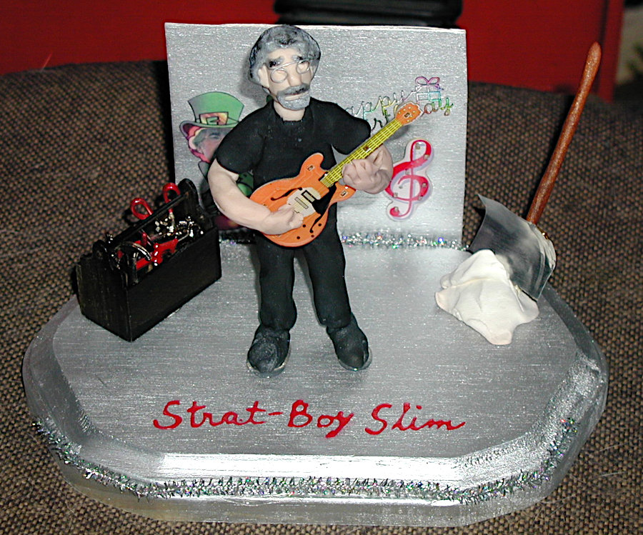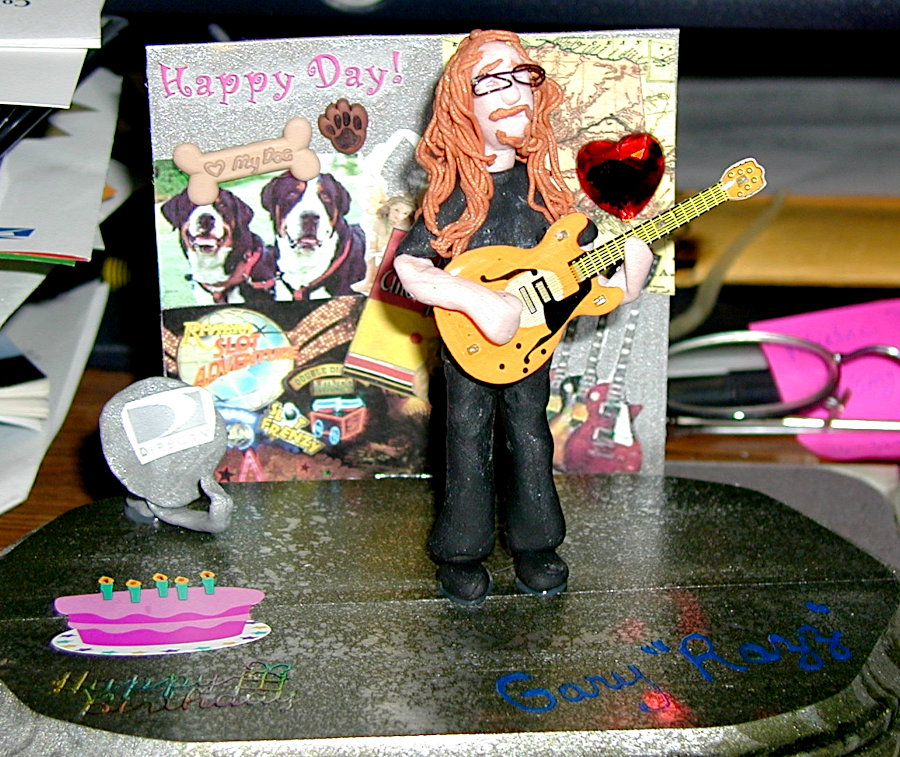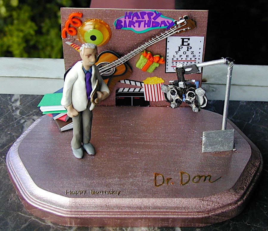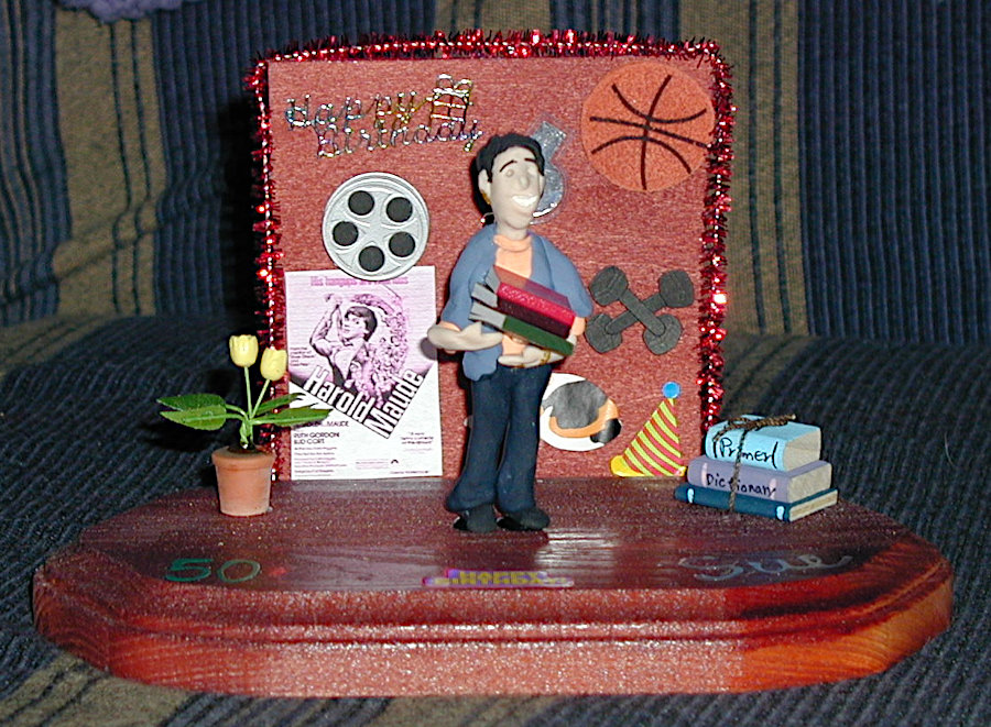 Gayle enjoyed making little dioramas of people for their birthdays and other special occasions such as anniversaries. They always contained a pretty good likeness of the individual along with items that represented their interests and hobbies and sometimes their profession. The recipients were always thrilled that Gayle not only made little “thems” but that she put forth time and effort to personalize it with their own particular interests. The photos below show you just a few of her creations. The last photo is of one that I made for Gayle; not nearly as good, but I felt it only fair that she should receive one also.