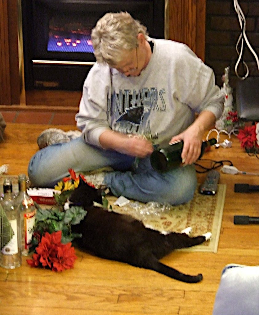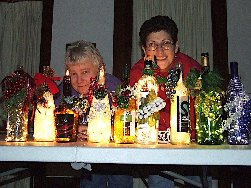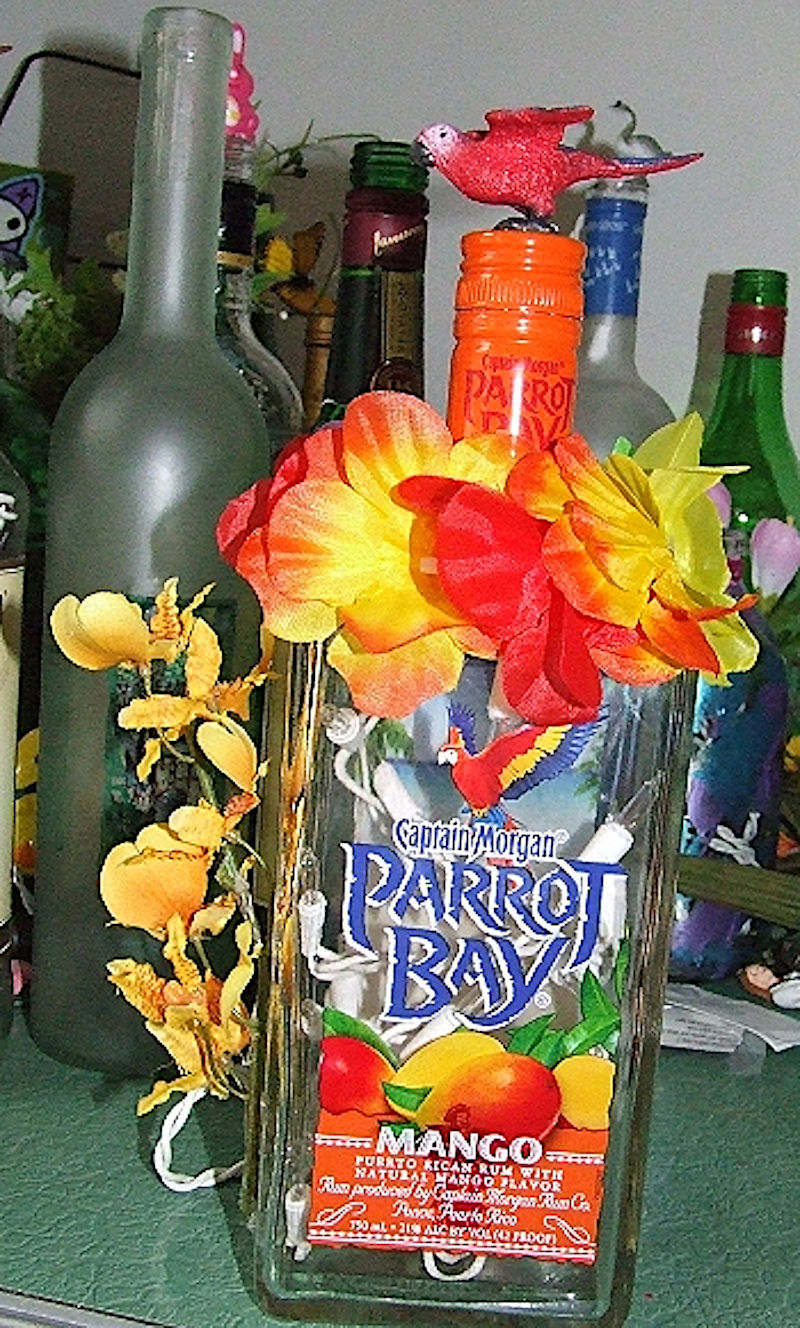 One time when we were doing a show selling Gayle’s jewelry, she saw several other vendors who were selling bottle lamps and of course thought “I can do that.” And so she did. She learned how to drill holes in the glass without shattering the bottles and was always on the lookout for interesting decorating materials. She would actually buy bottles of wine and other liquor based not on the contents, but how interesting she thought the bottle was! We sold her bottle lamps at some shows, but I know she enjoyed making them to give away more.